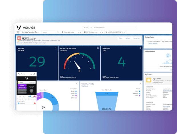 スケーラブルなVonageクラウドContact Center機能のプログラム一式をご紹介します。豊富なソリューション一式が、パフォーマンス管理を支援し、CRMチャネルを統合し、お客様をインテリジェントにルーティングし、チームを最適化します。